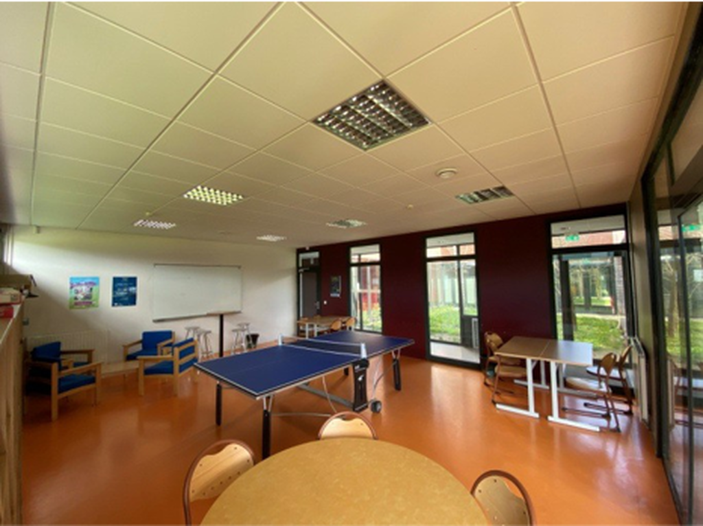 Des espaces de détente sont accessibles en fonction du programme : salle TV, espace jeux (jeux de société, pingpong,...).